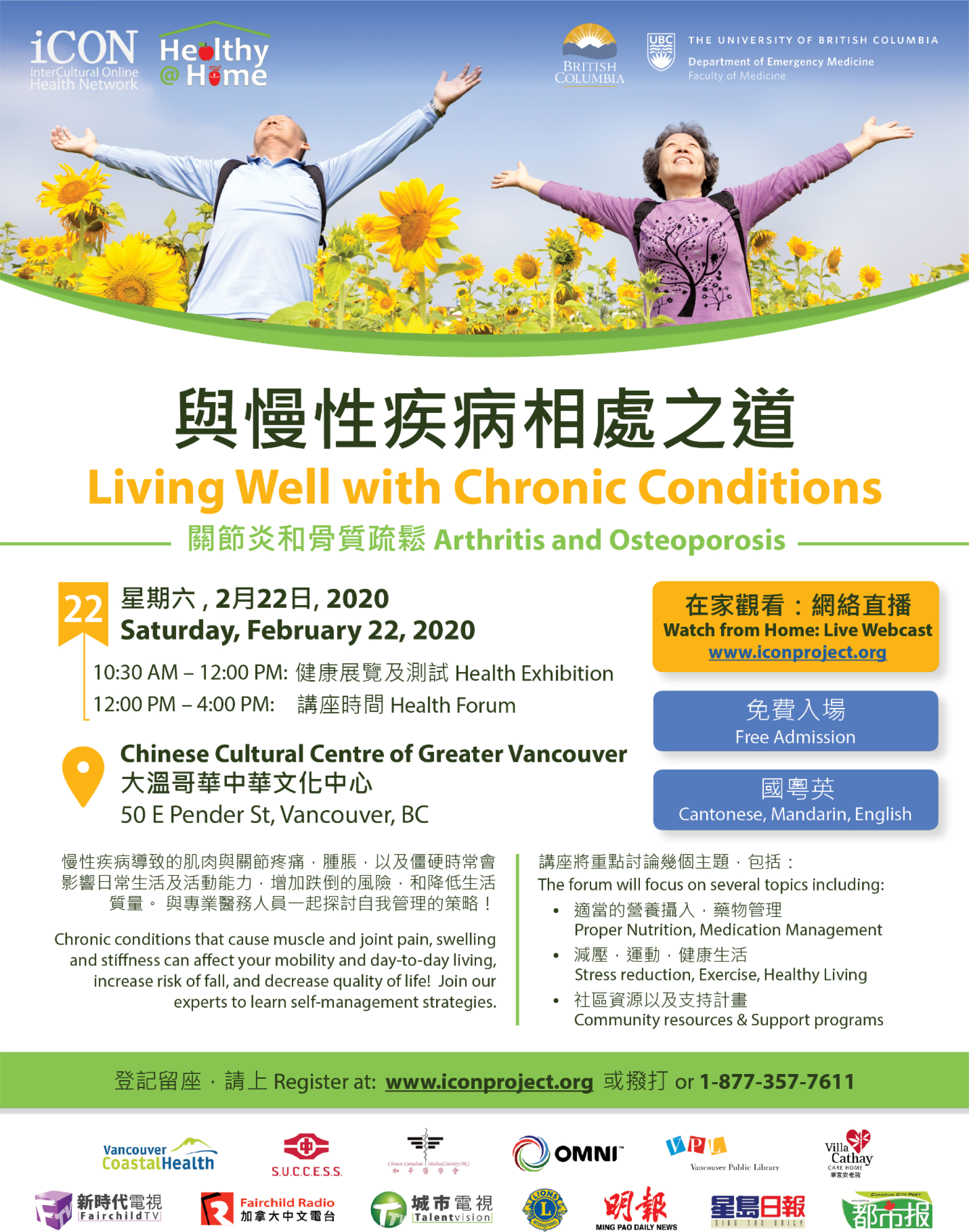 The iCON program is supported by funding from the BC Ministry of Health, which covered the cost of organizing and executing the February 22, 2020 iCON Chinese Health forum.